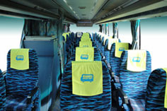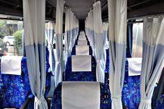 ![]() 1席ごとに通路を挟んだ快適な独立シートタイプ。縦8~10列の座席配置。 |