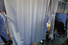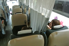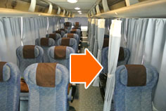 実際の車内の写真をはじめ、カーテン付きのバスもご紹介します。