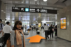 - 1.中央改札からの行き方。改札を出ると太閤口への案内表示に沿って進む。
