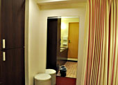 ![]() 縦7列のゆったり配置で、各席に区切れるカーテンが付いています。 |
